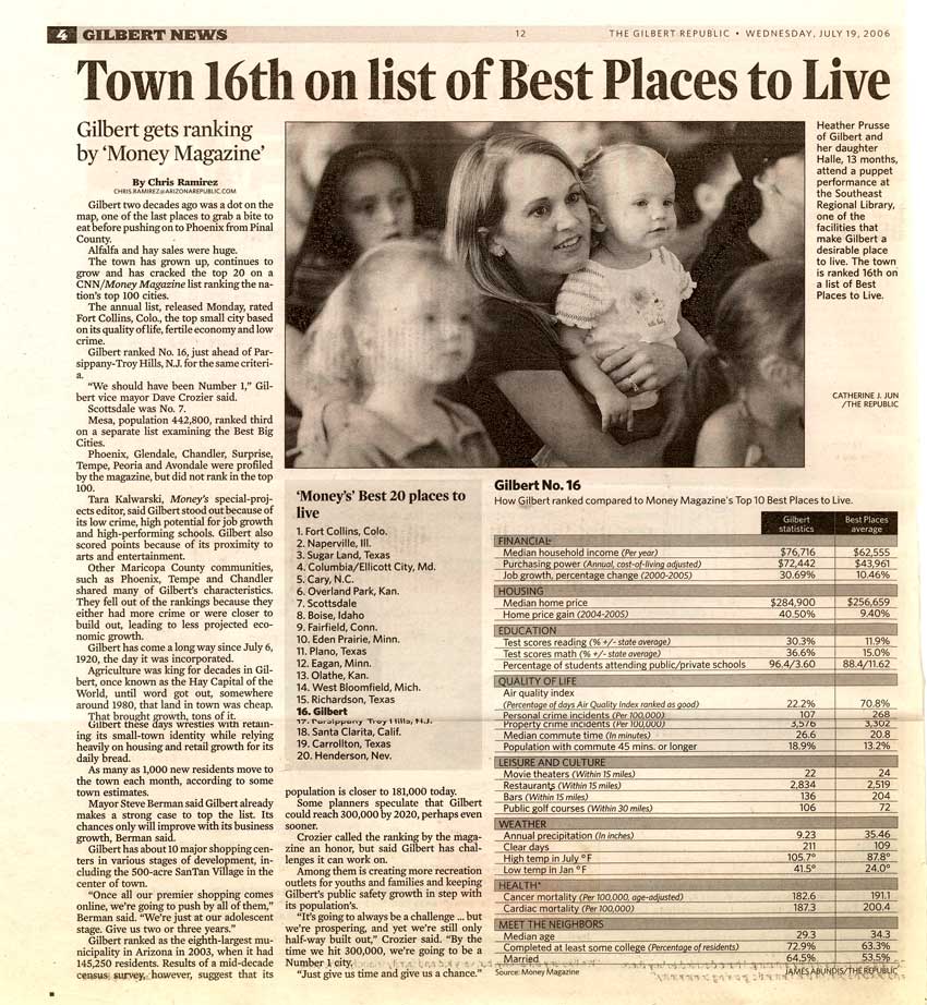 - Gilbert: "Best Places To Live"